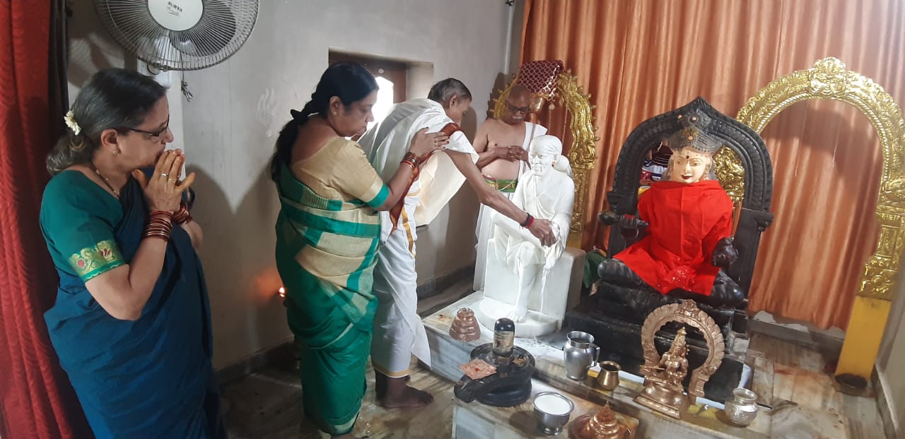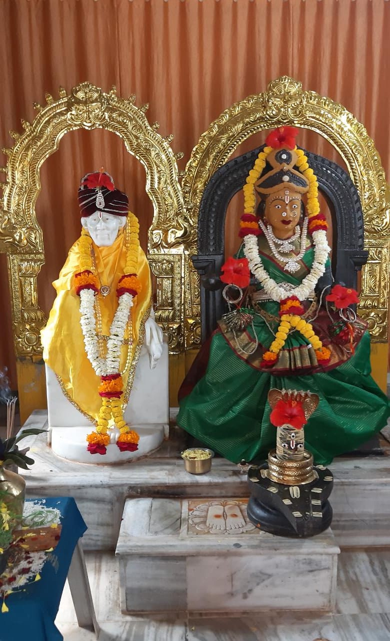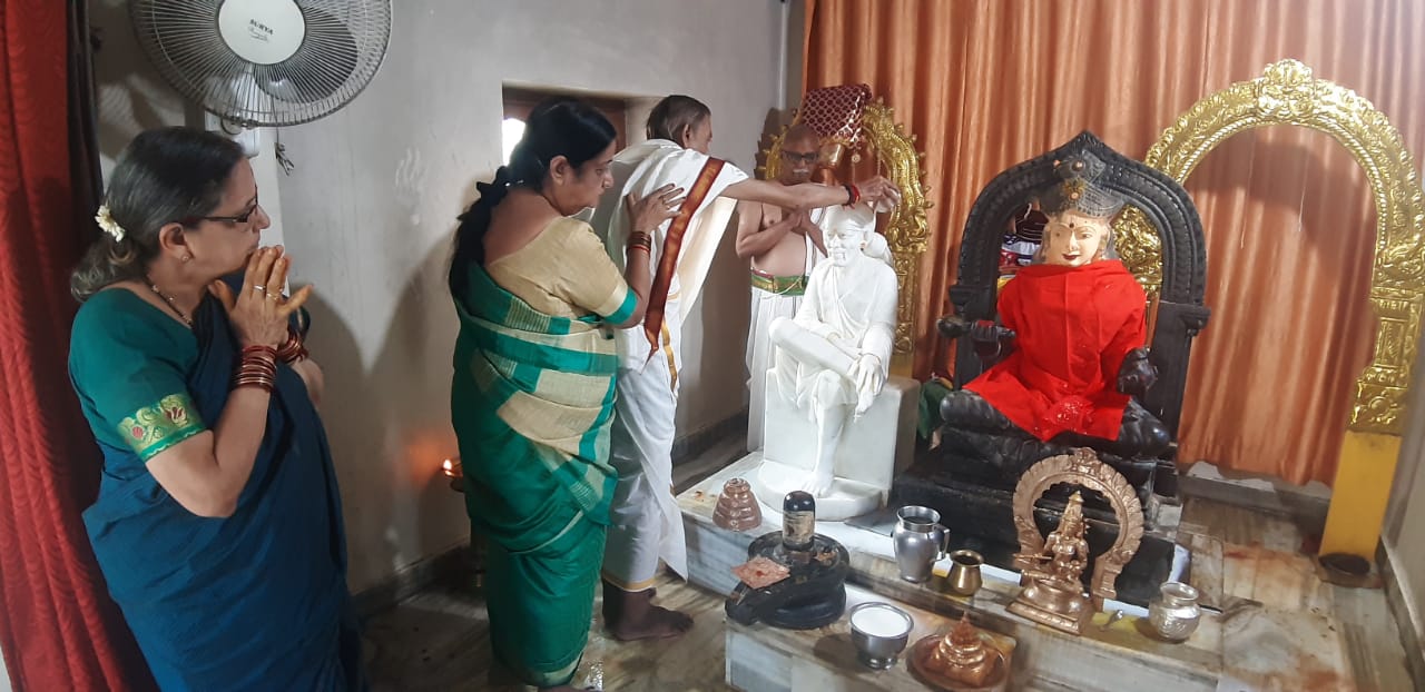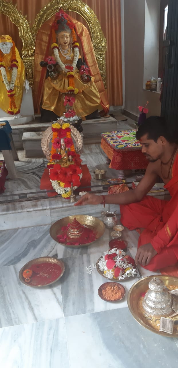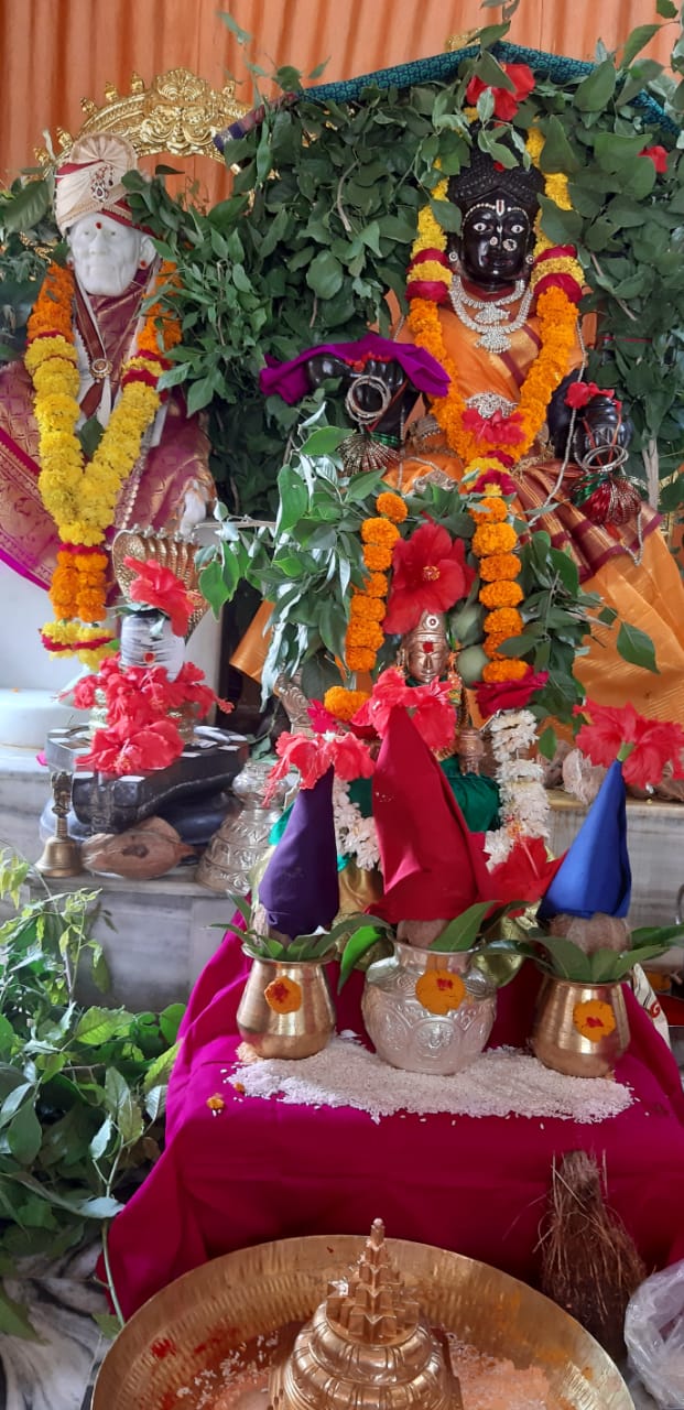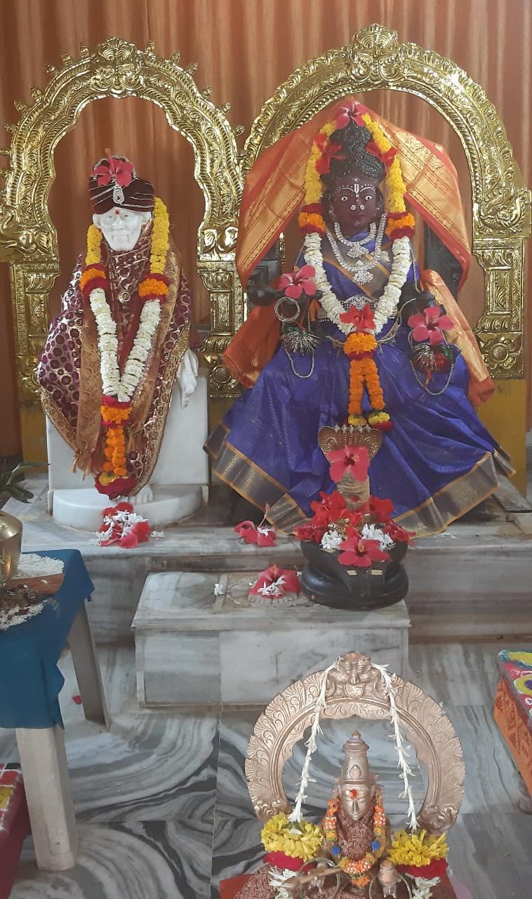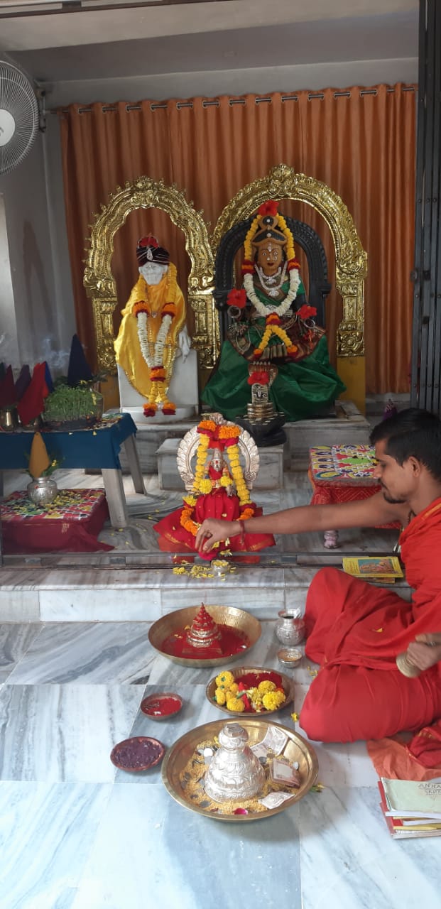 On the sixth day of Sarannavaratri celebrations Annapurneswari in Pancha Mukha Ganapati Temple Shirdi is worshipped in the form of KATYAYANI. Abhishekam Navavarana Archana Sree Chakrarchana and Chandi Parayana continued...