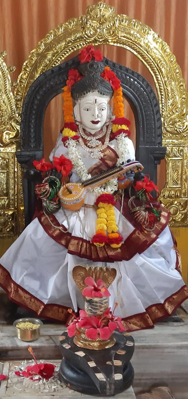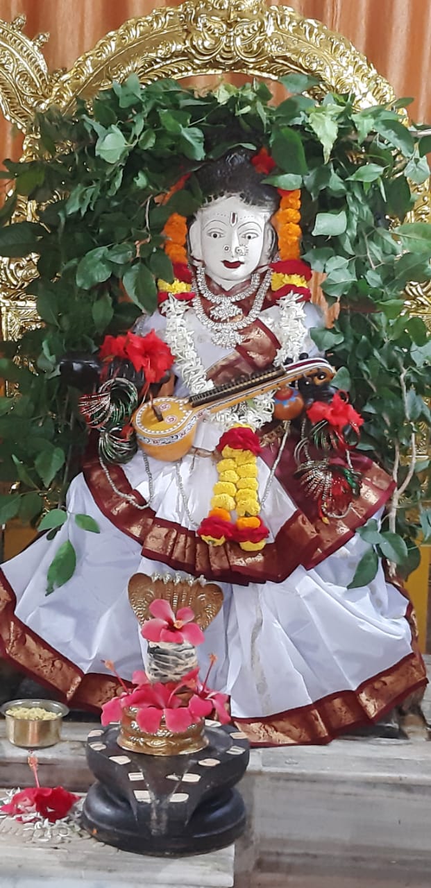 The seventh day of Sarannavaratri is Moola Nakshatram. Matha Annapurneswari in Pancha Mukha Ganapati Temple is worshipped as Goddess SARASWATI. Abhishekam, Bilvarchana, Sree Chakrarchana, Saptha Sati Chandi Parayana continued today. Nava Graha Kalsam, Durga Sarvatro Bhadra Mandapam,Nava Durga Sarvatro Bhadra Mandapam Pooja were also performed in the morning. Being holiday several devotees visited and received blessings.