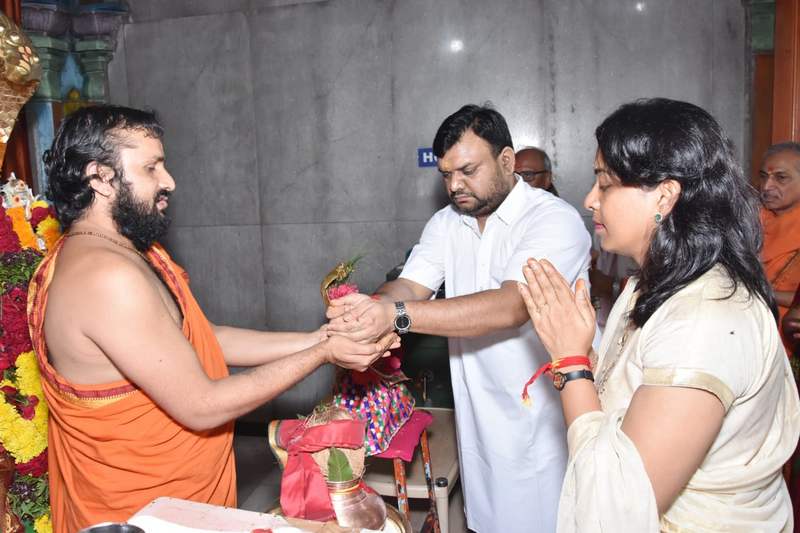"Saibaba Sasthan Chief Executive Officer Mrs.Rubal Agarwal with Husband Mr.Prakhar Agarwal visited Panchamukhi Ganapati Temple